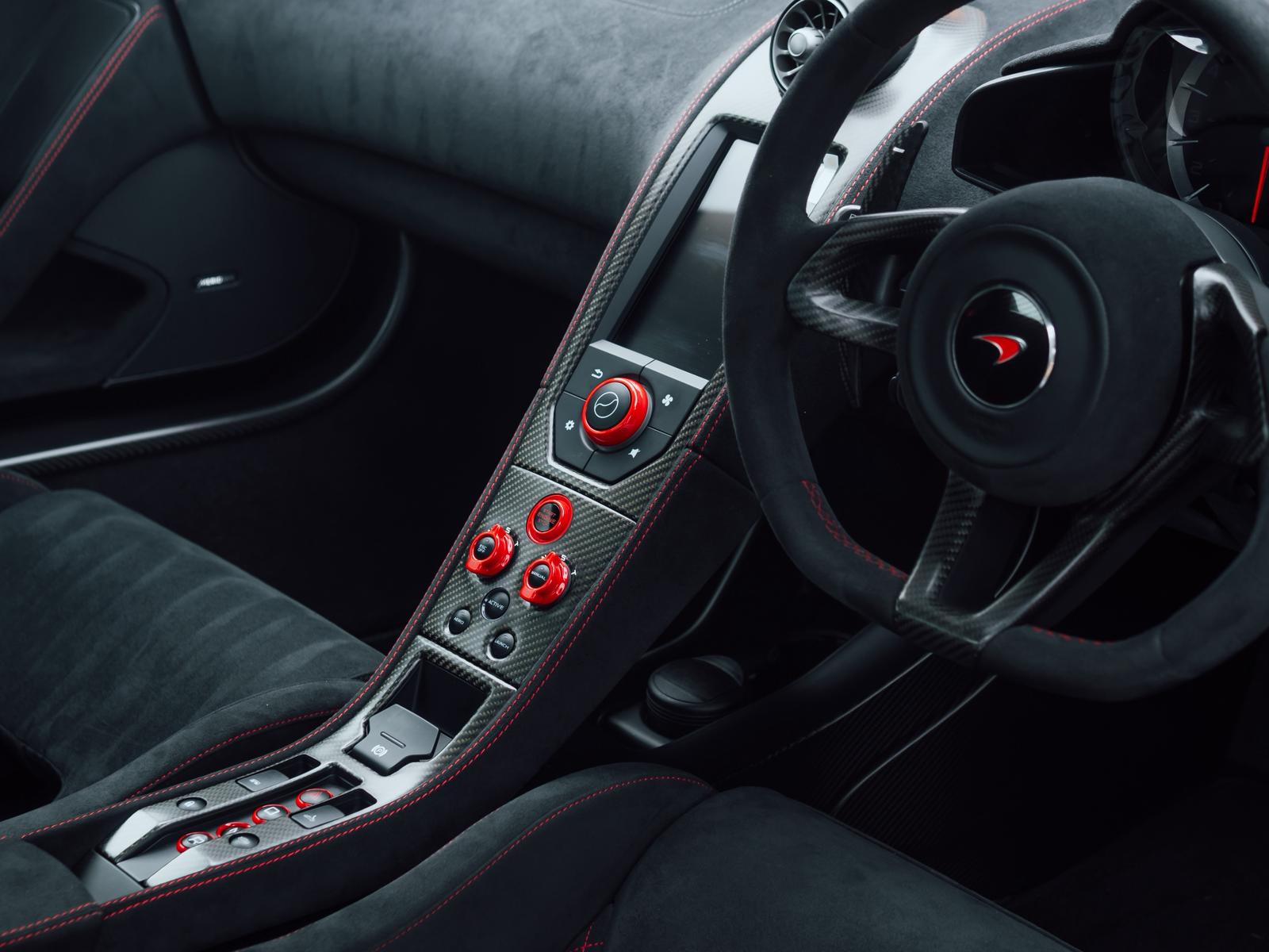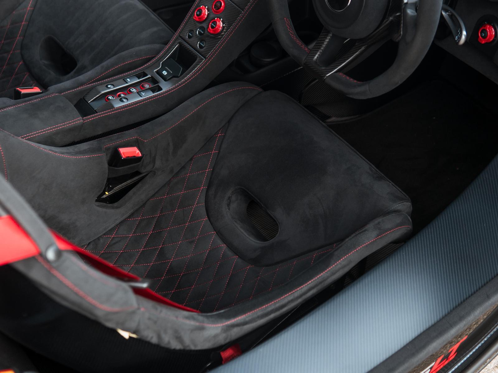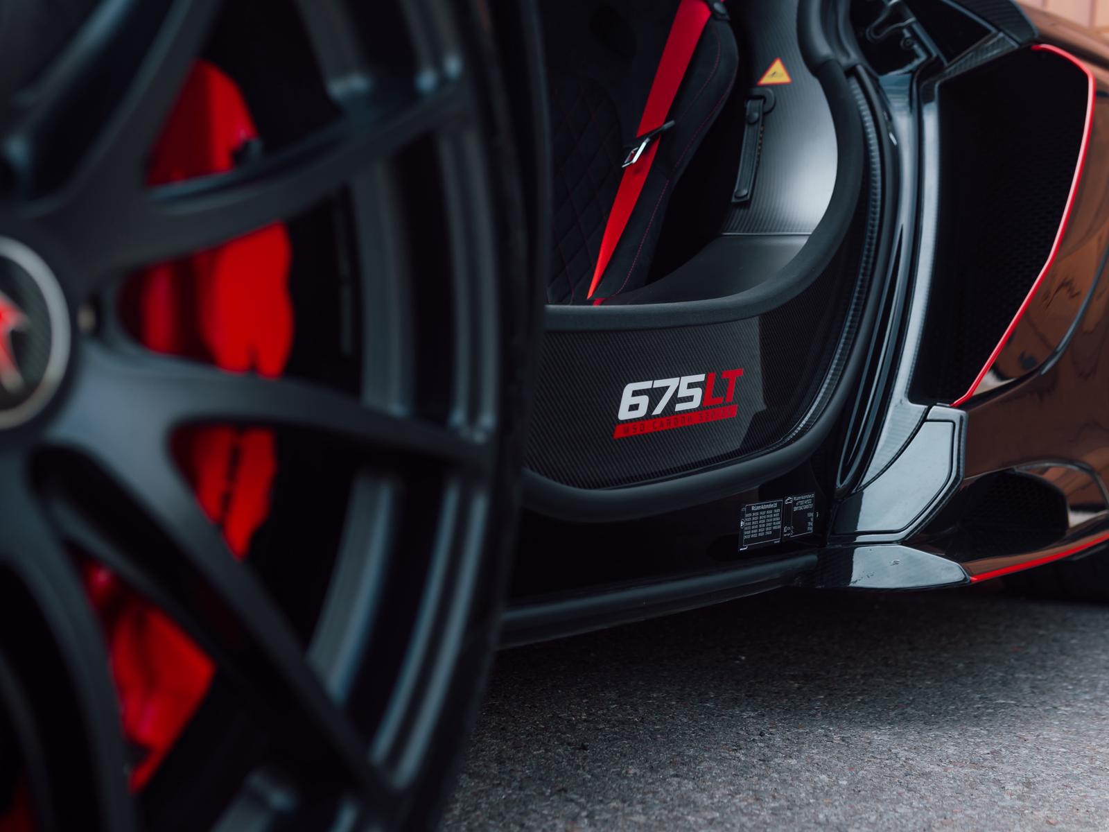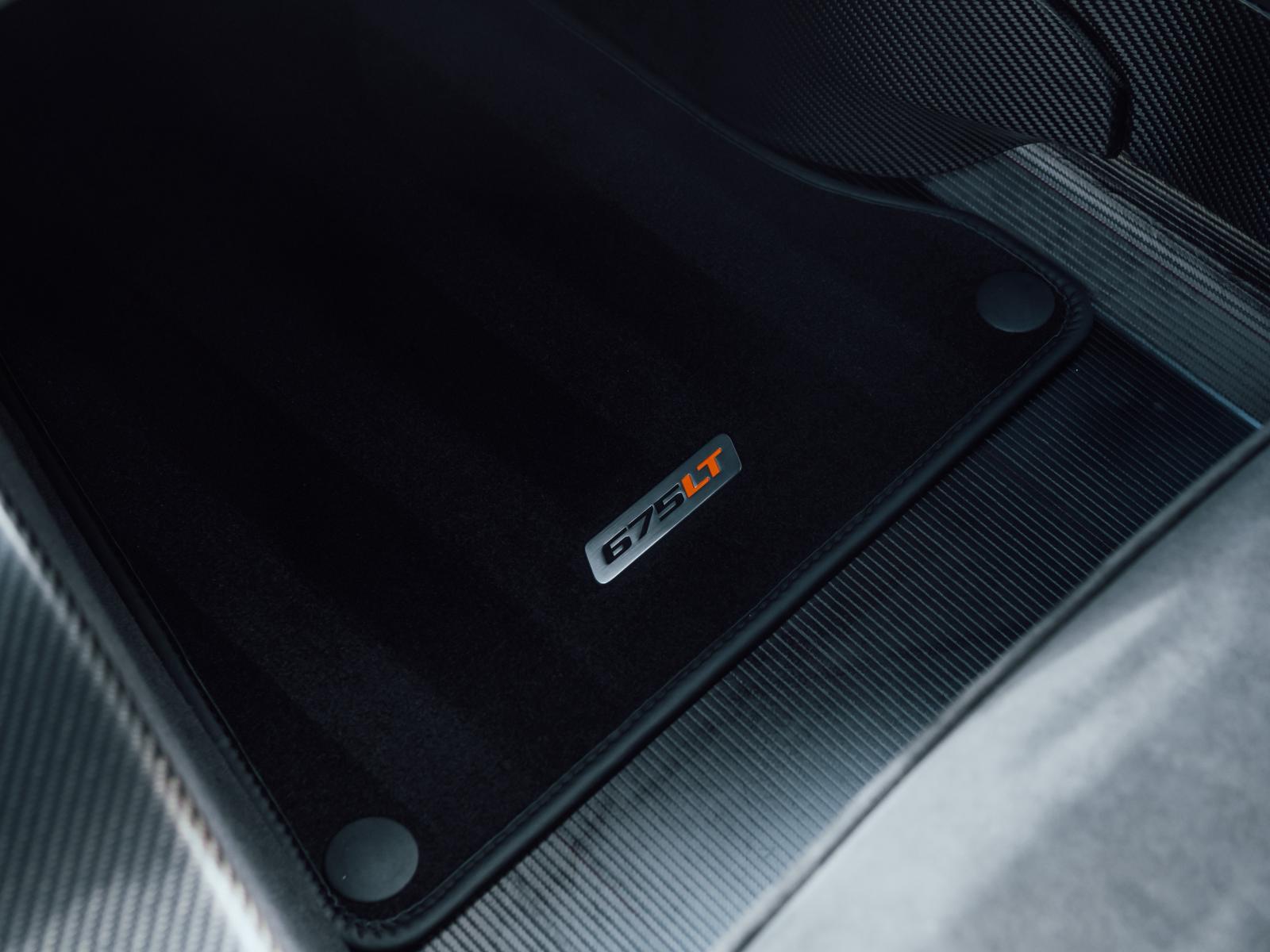 This particular car is exceptionally specified. It features MSO Bespoke Red detailing throughout the interior and exterior, the only car optioned as such as a nod to the Visual Carbon P1. Highlights include extensive Red pin striping and matching callipers. The interior is equally impressive. Full carbon fibre racing seats, inspired by the P1, are trimmed in Carbon Black Alcantara and finished with red cross-stitching and embroidered ‘675LT’ headrests. A bespoke MSO steering wheel, extended Alcantara trim, and continued red accenting.