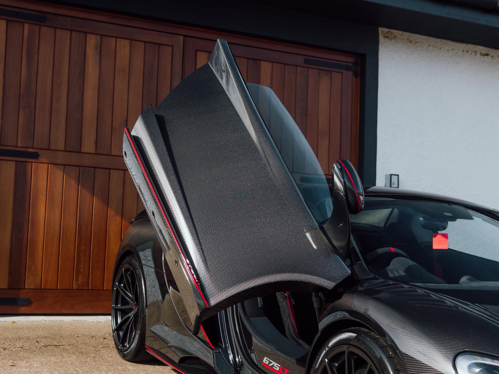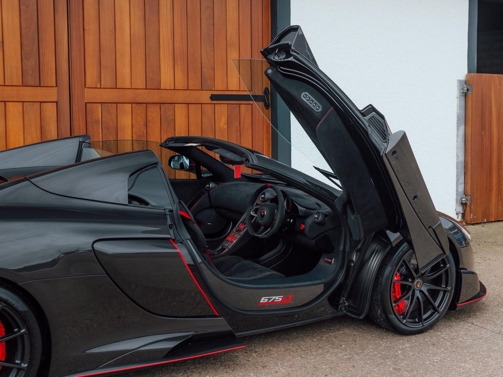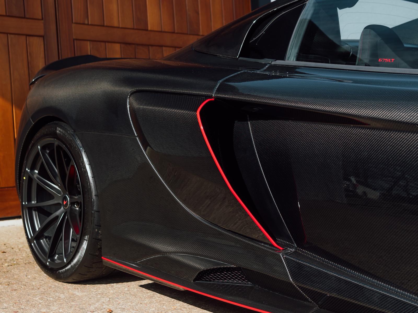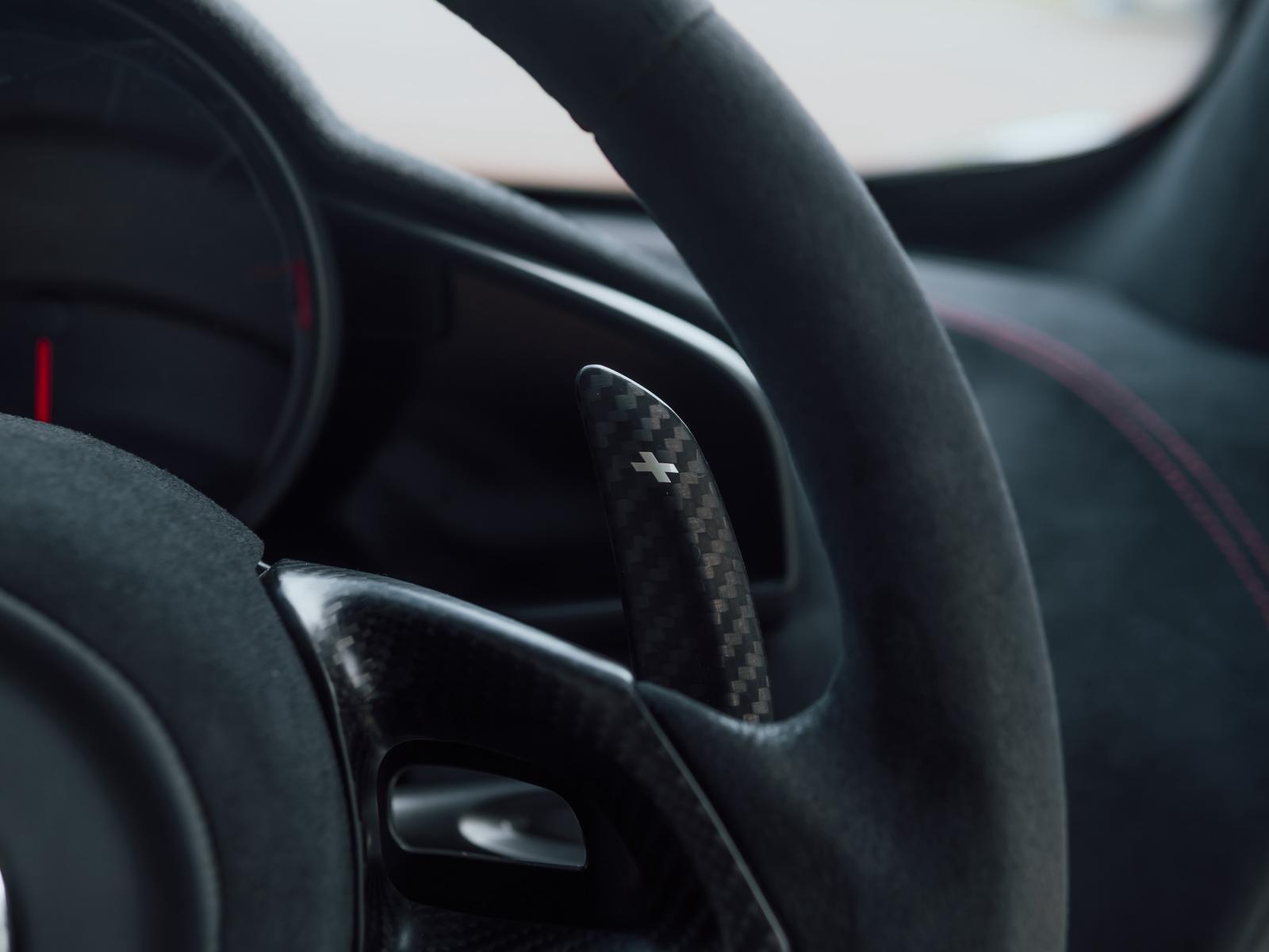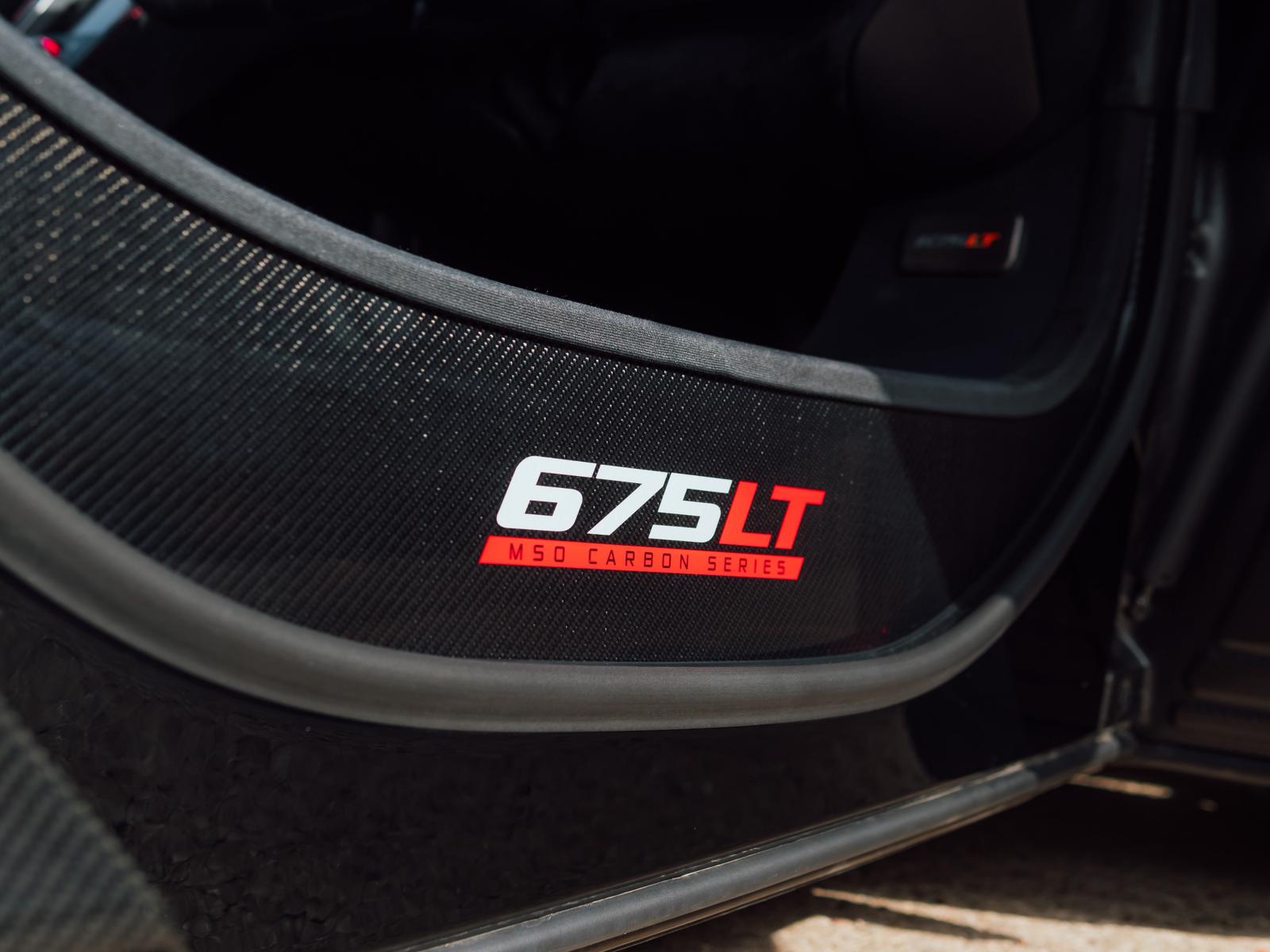 This particular car is exceptionally specified. It features MSO Bespoke Red detailing throughout the interior and exterior, the only car optioned as such as a nod to the Visual Carbon P1. Highlights include extensive Red pin striping and matching callipers. The interior is equally impressive. Full carbon fibre racing seats, inspired by the P1, are trimmed in Carbon Black Alcantara and finished with red cross-stitching and embroidered ‘675LT’ headrests. A bespoke MSO steering wheel, extended Alcantara trim, and continued red accenting.
