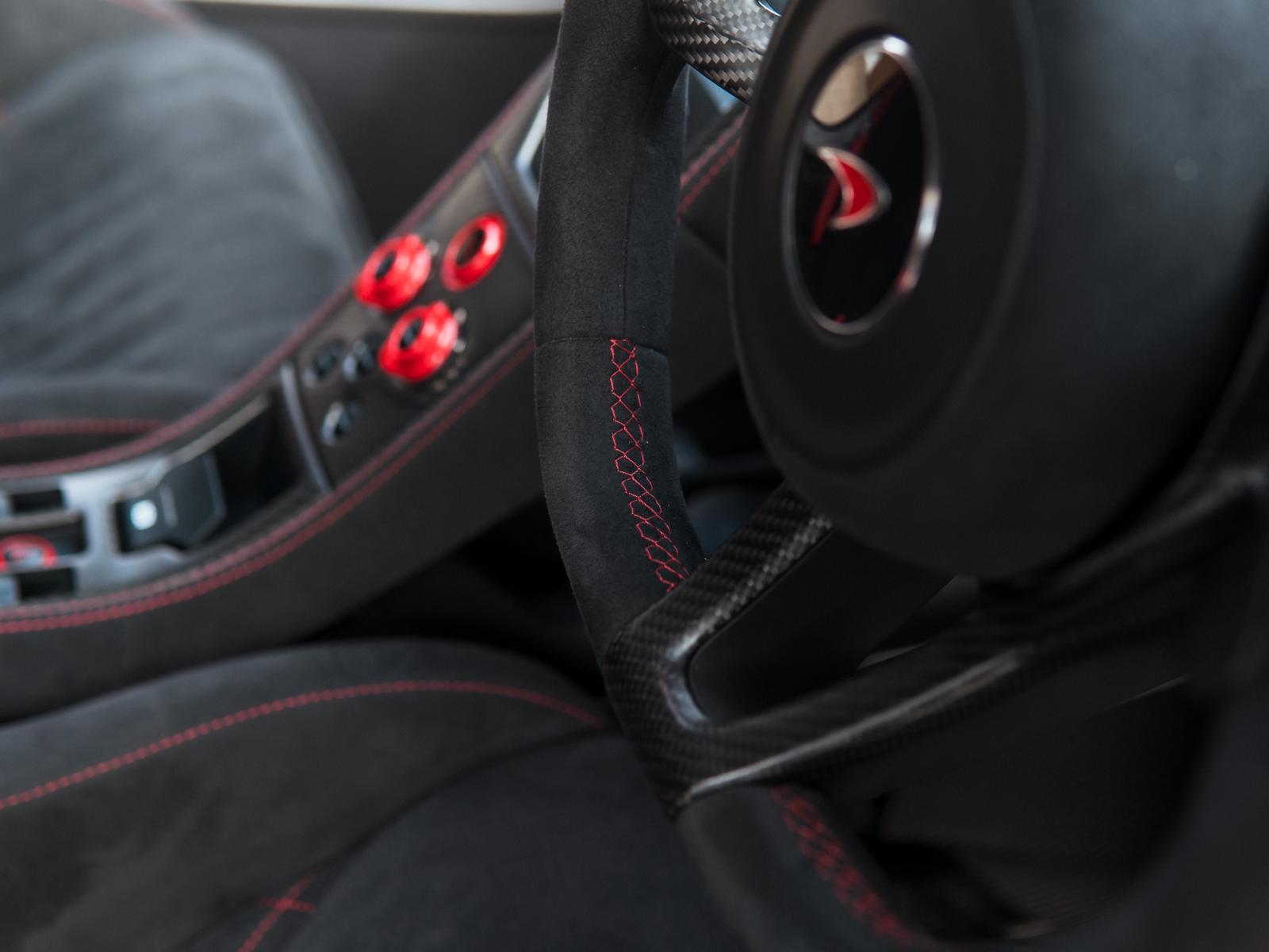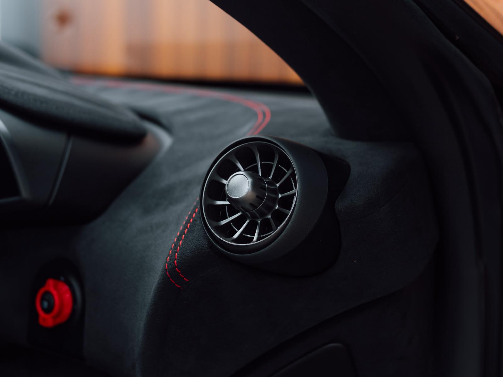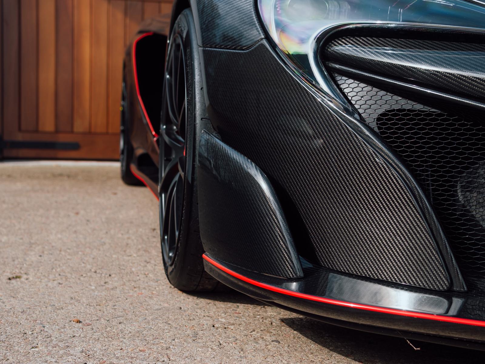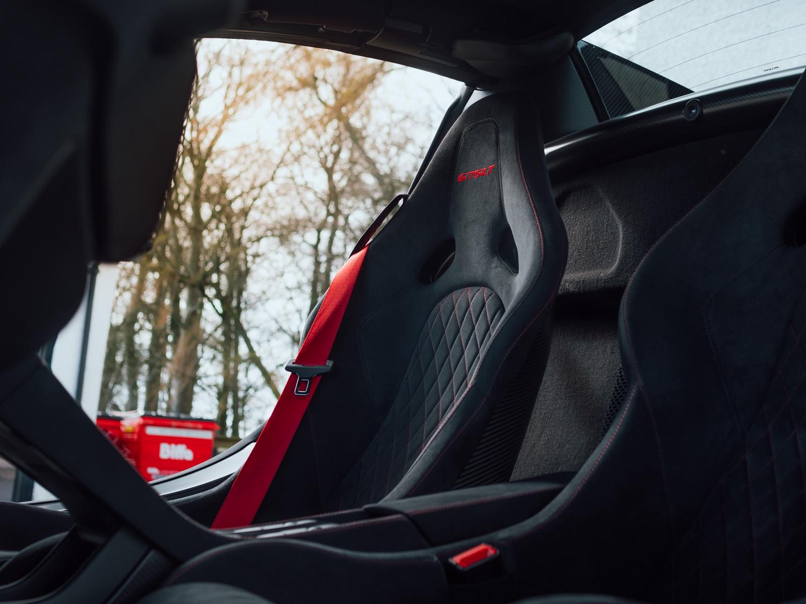 This particular car is exceptionally specified. It features MSO Bespoke Red detailing throughout the interior and exterior, the only car optioned as such as a nod to the Visual Carbon P1. Highlights include extensive Red pin striping and matching callipers. The interior is equally impressive. Full carbon fibre racing seats, inspired by the P1, are trimmed in Carbon Black Alcantara and finished with red cross-stitching and embroidered ‘675LT’ headrests. A bespoke MSO steering wheel, extended Alcantara trim, and continued red accenting.