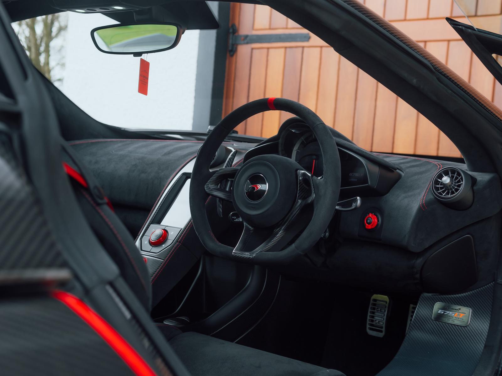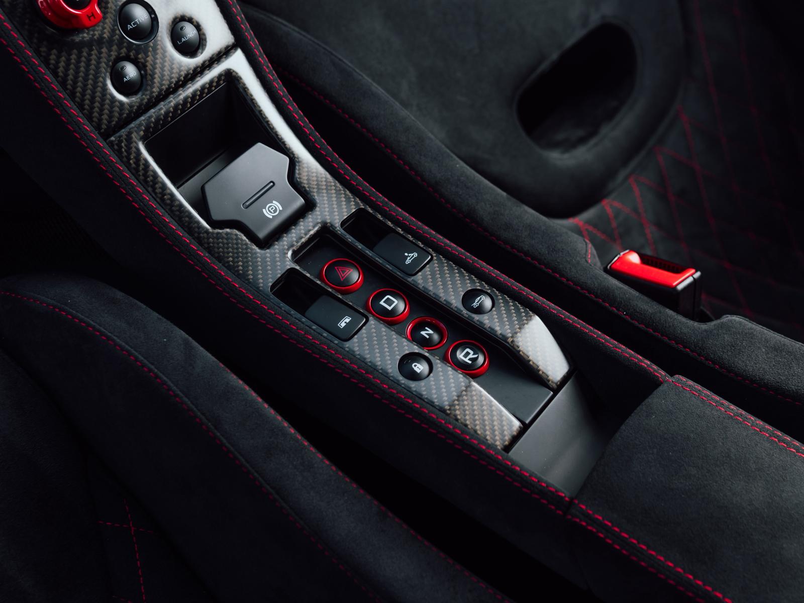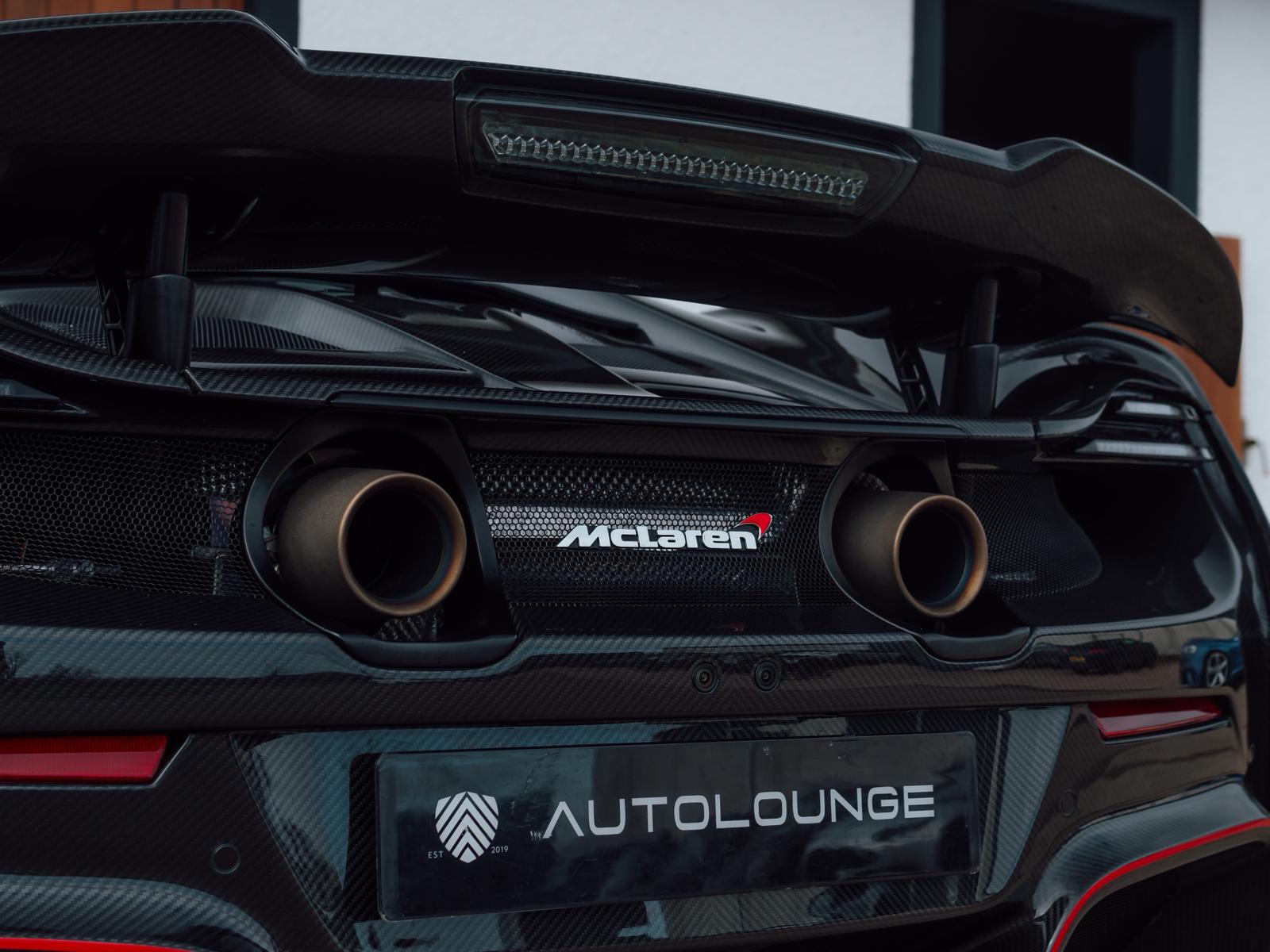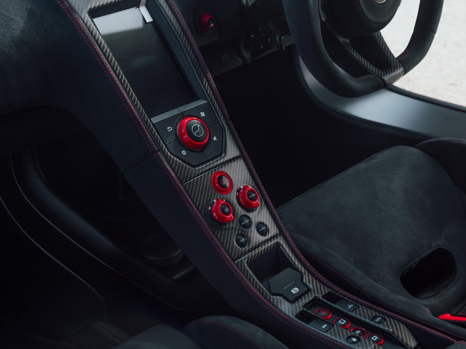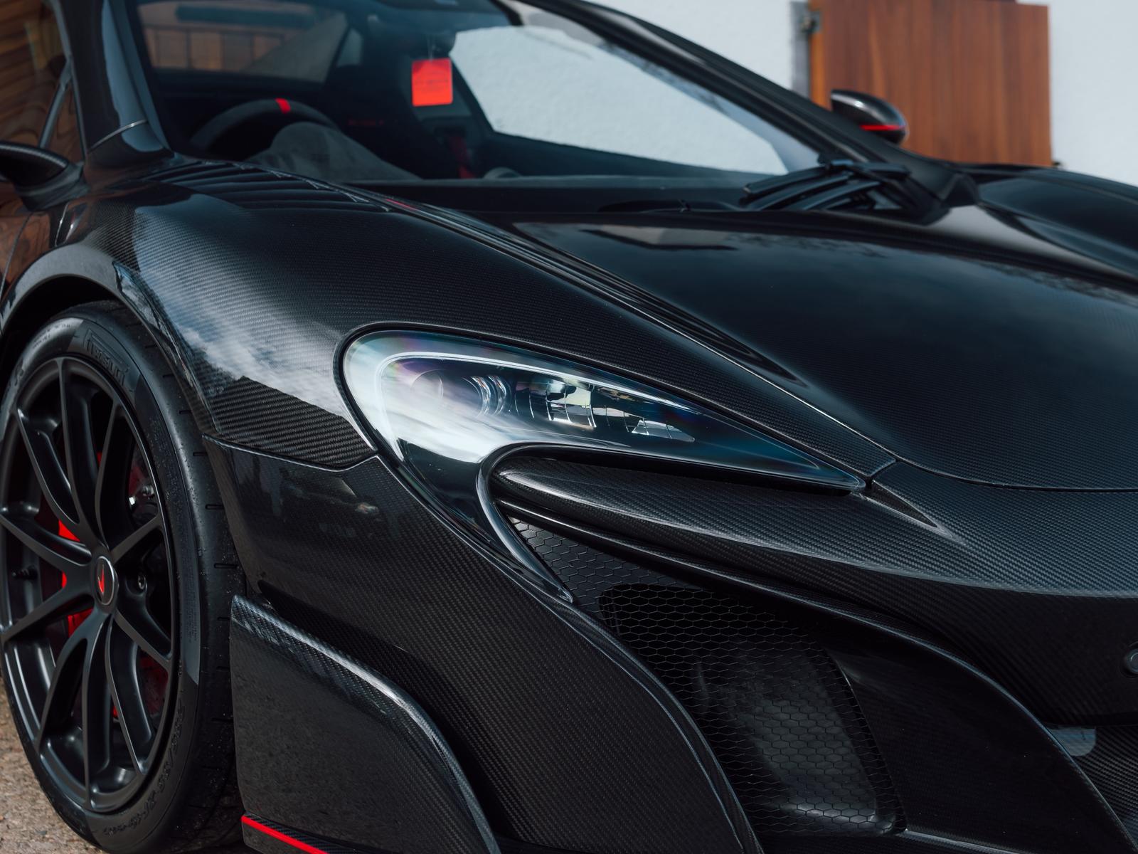 This particular car is exceptionally specified. It features MSO Bespoke Red detailing throughout the interior and exterior, the only car optioned as such as a nod to the Visual Carbon P1. Highlights include extensive Red pin striping and matching callipers. The interior is equally impressive. Full carbon fibre racing seats, inspired by the P1, are trimmed in Carbon Black Alcantara and finished with red cross-stitching and embroidered ‘675LT’ headrests. A bespoke MSO steering wheel, extended Alcantara trim, and continued red accenting.
