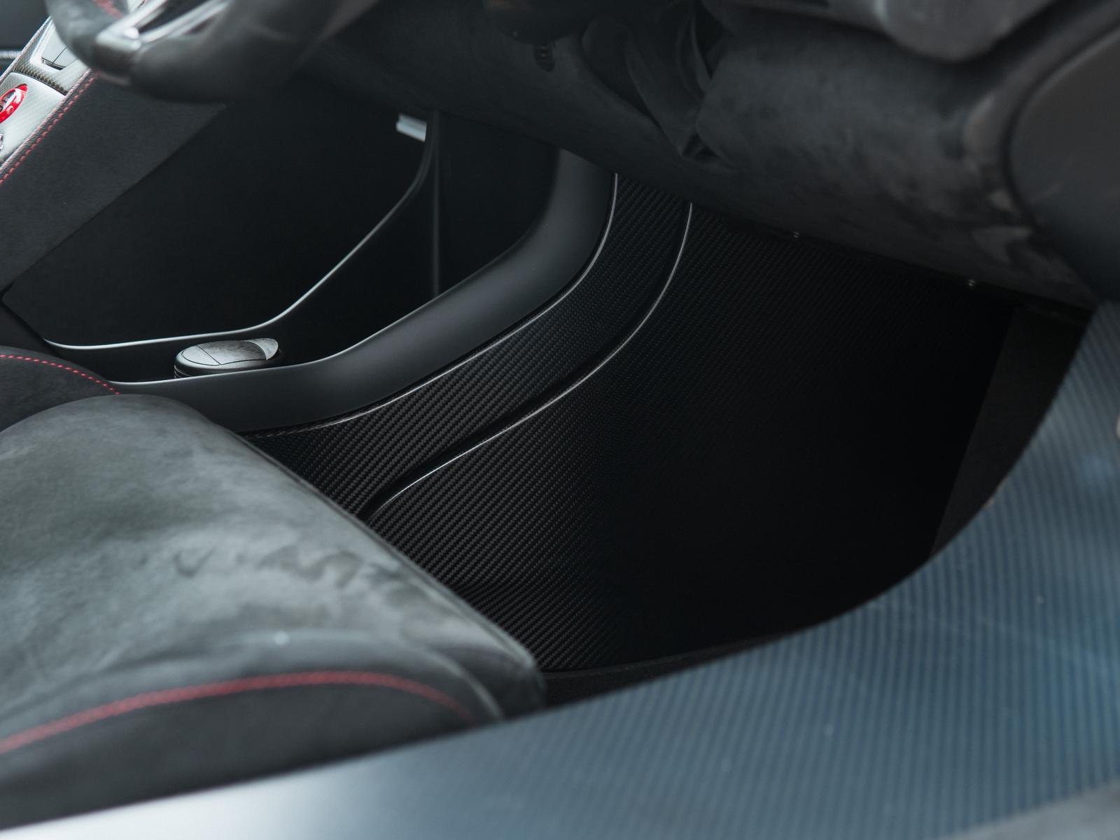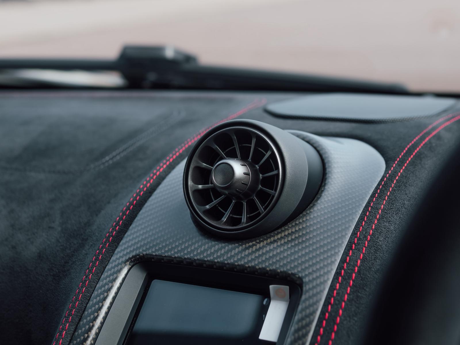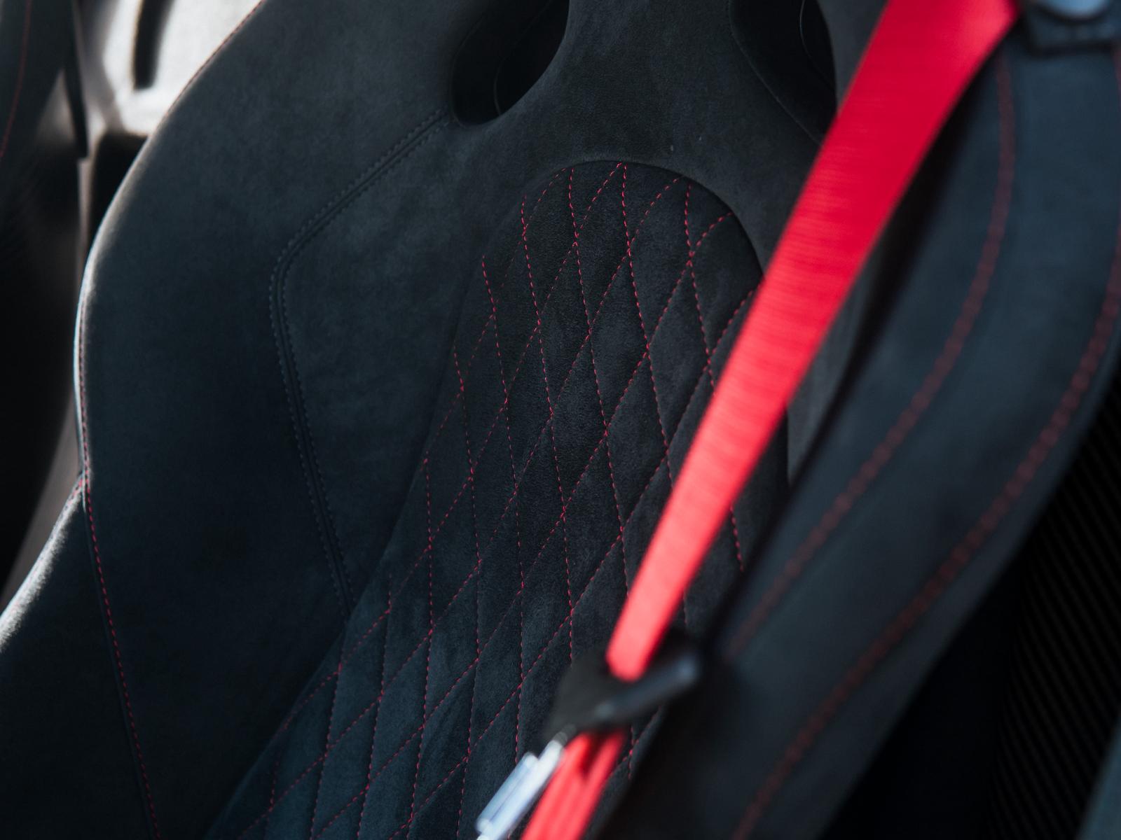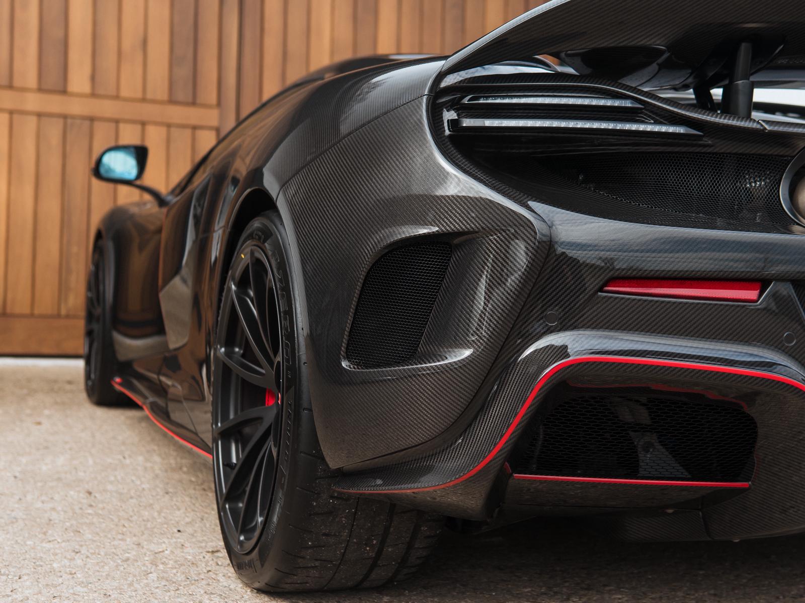 This particular car is exceptionally specified. It features MSO Bespoke Red detailing throughout the interior and exterior, the only car optioned as such as a nod to the Visual Carbon P1. Highlights include extensive Red pin striping and matching callipers. The interior is equally impressive. Full carbon fibre racing seats, inspired by the P1, are trimmed in Carbon Black Alcantara and finished with red cross-stitching and embroidered ‘675LT’ headrests. A bespoke MSO steering wheel, extended Alcantara trim, and continued red accenting.