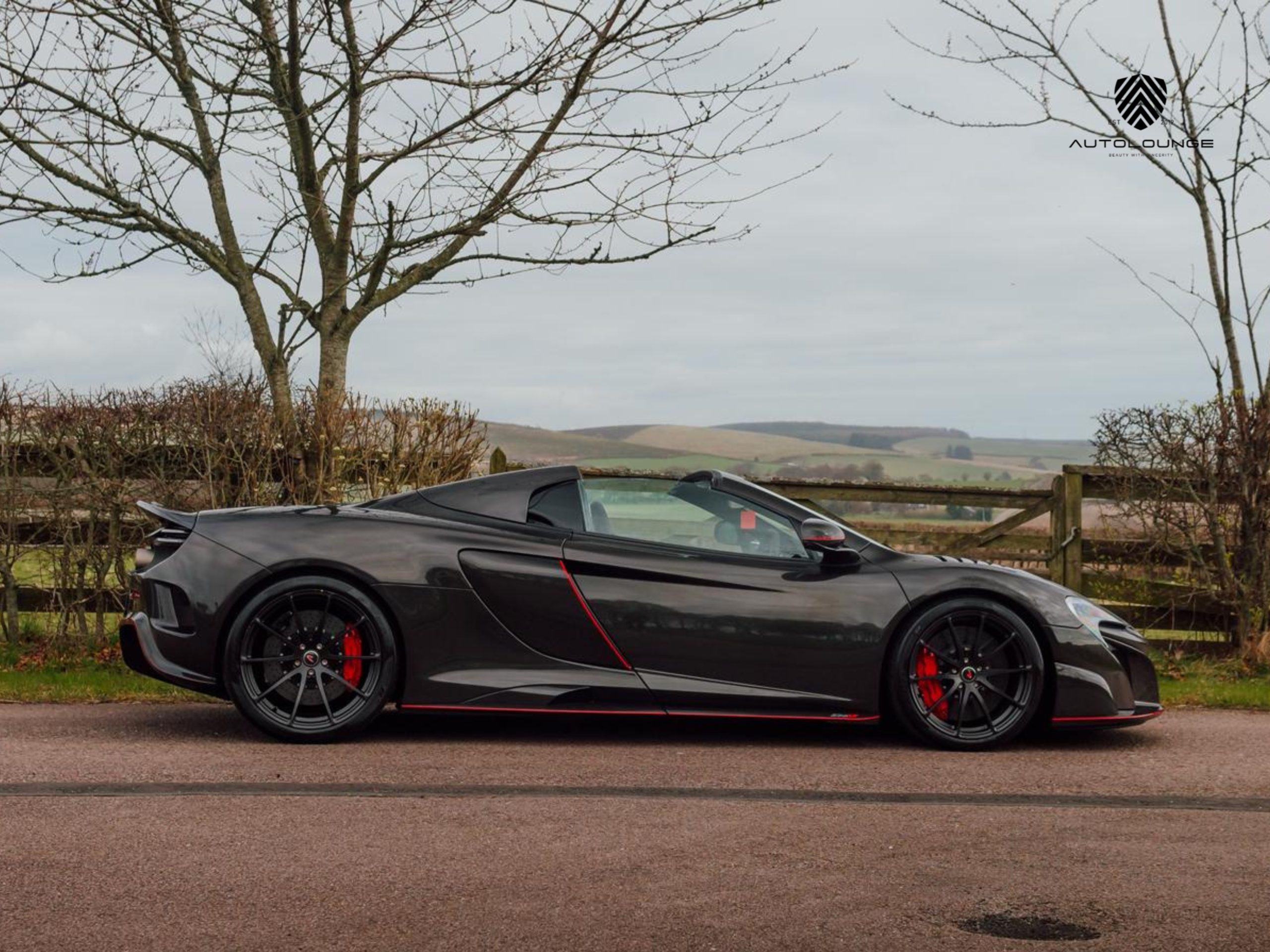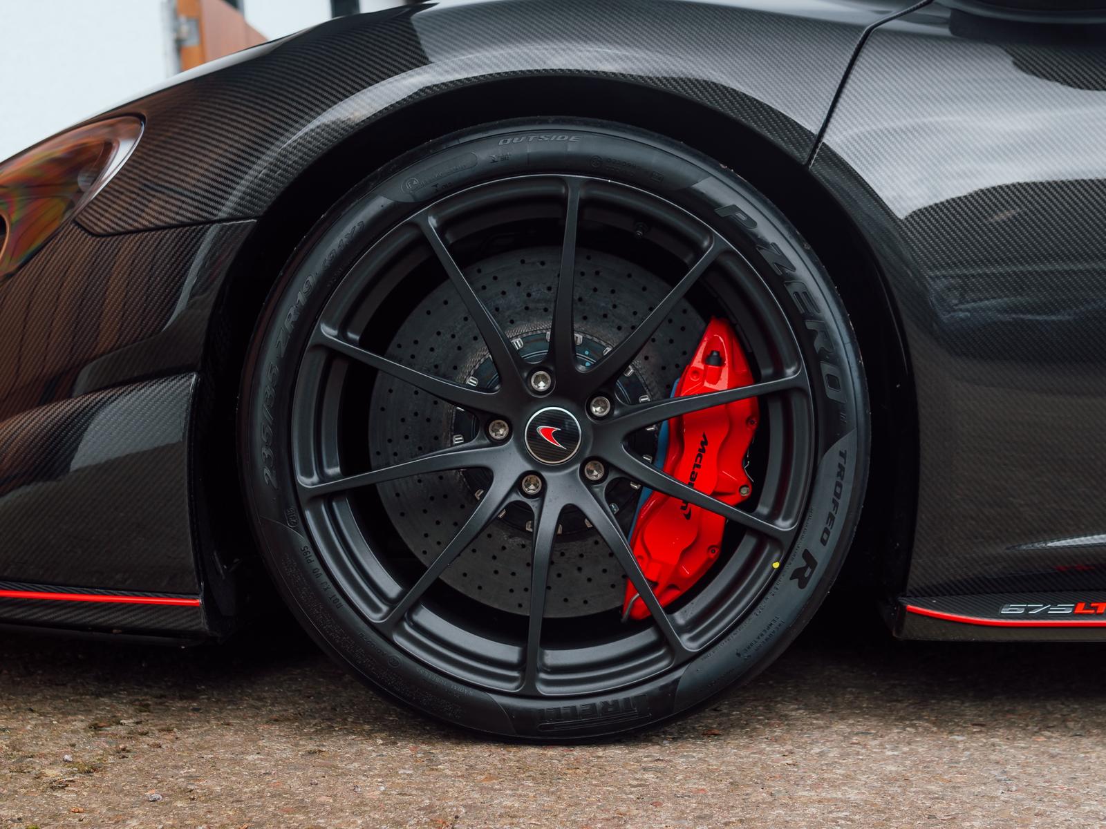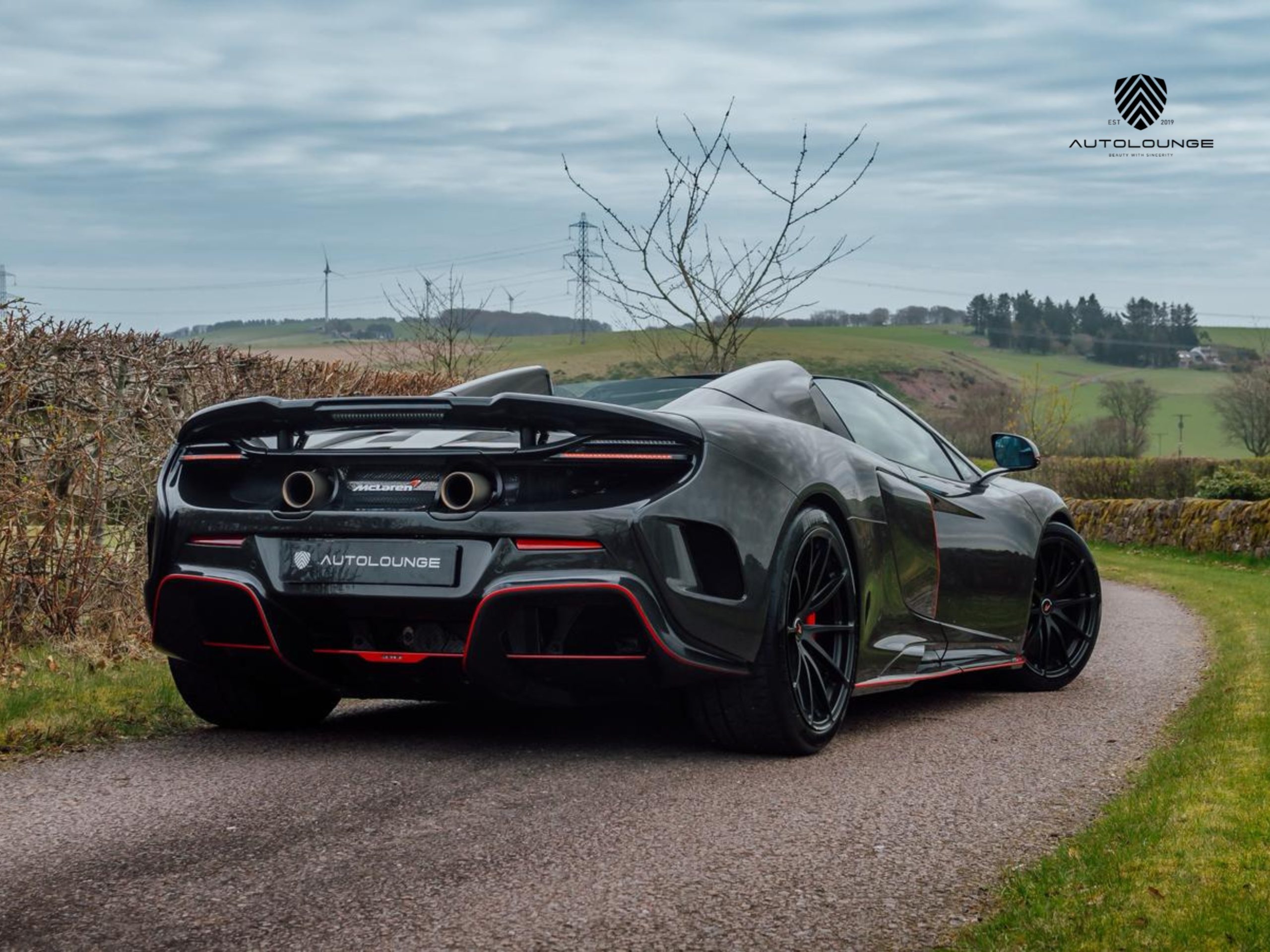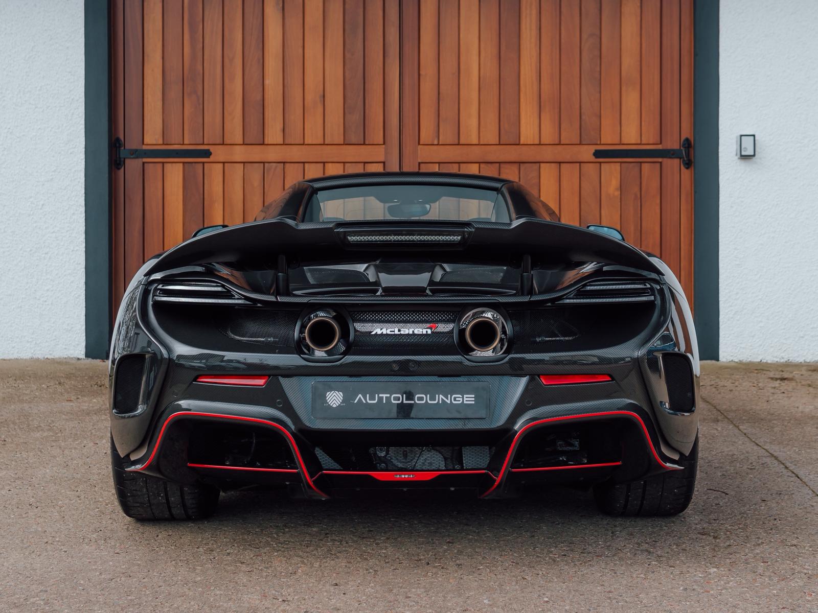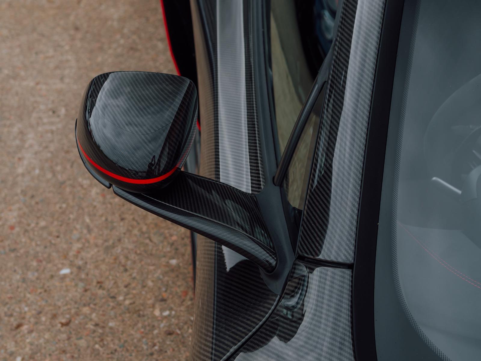 This particular car is exceptionally specified. It features MSO Bespoke Red detailing throughout the interior and exterior, the only car optioned as such as a nod to the Visual Carbon P1. Highlights include extensive Red pin striping and matching callipers. The interior is equally impressive. Full carbon fibre racing seats, inspired by the P1, are trimmed in Carbon Black Alcantara and finished with red cross-stitching and embroidered ‘675LT’ headrests. A bespoke MSO steering wheel, extended Alcantara trim, and continued red accenting.