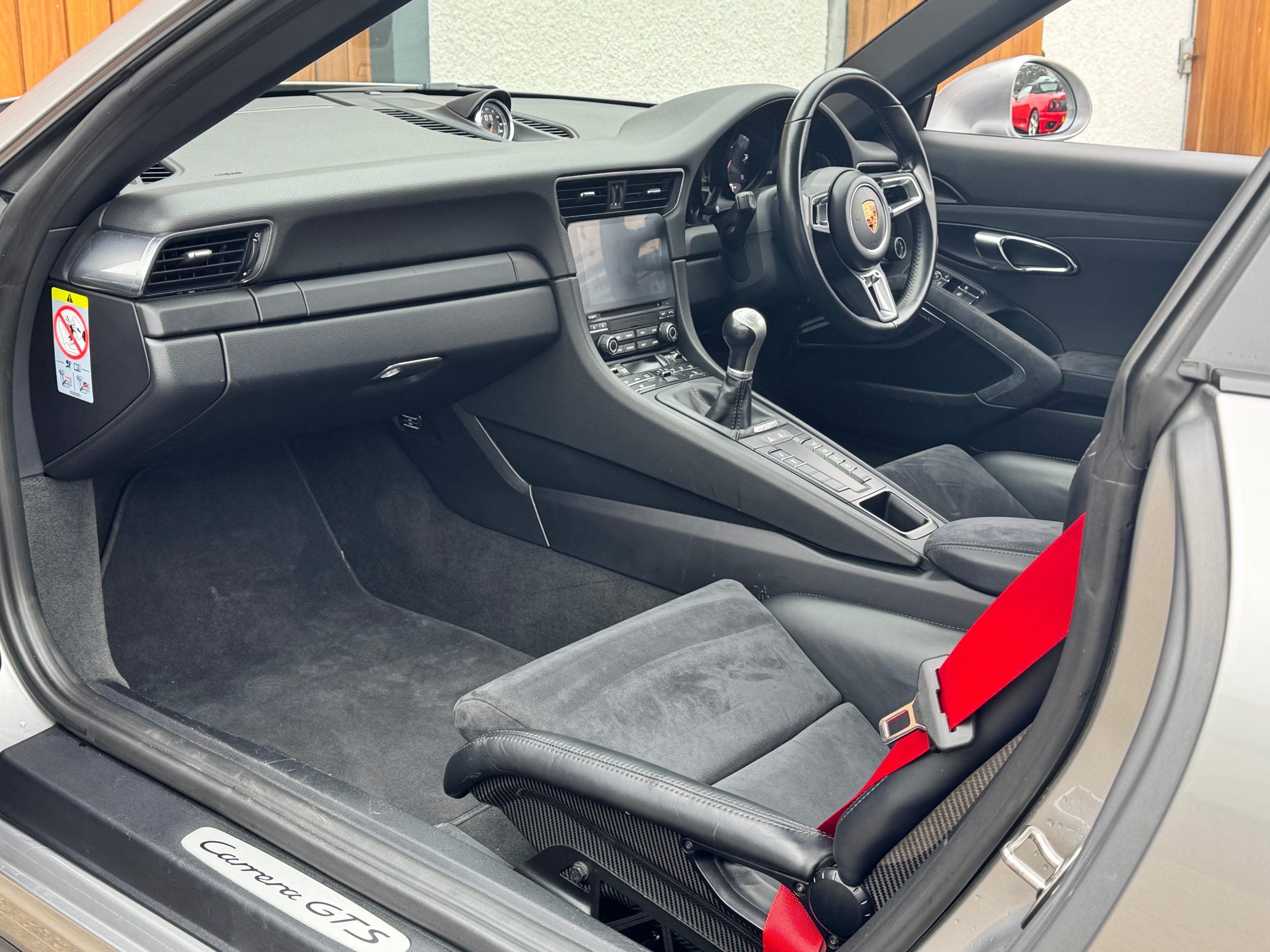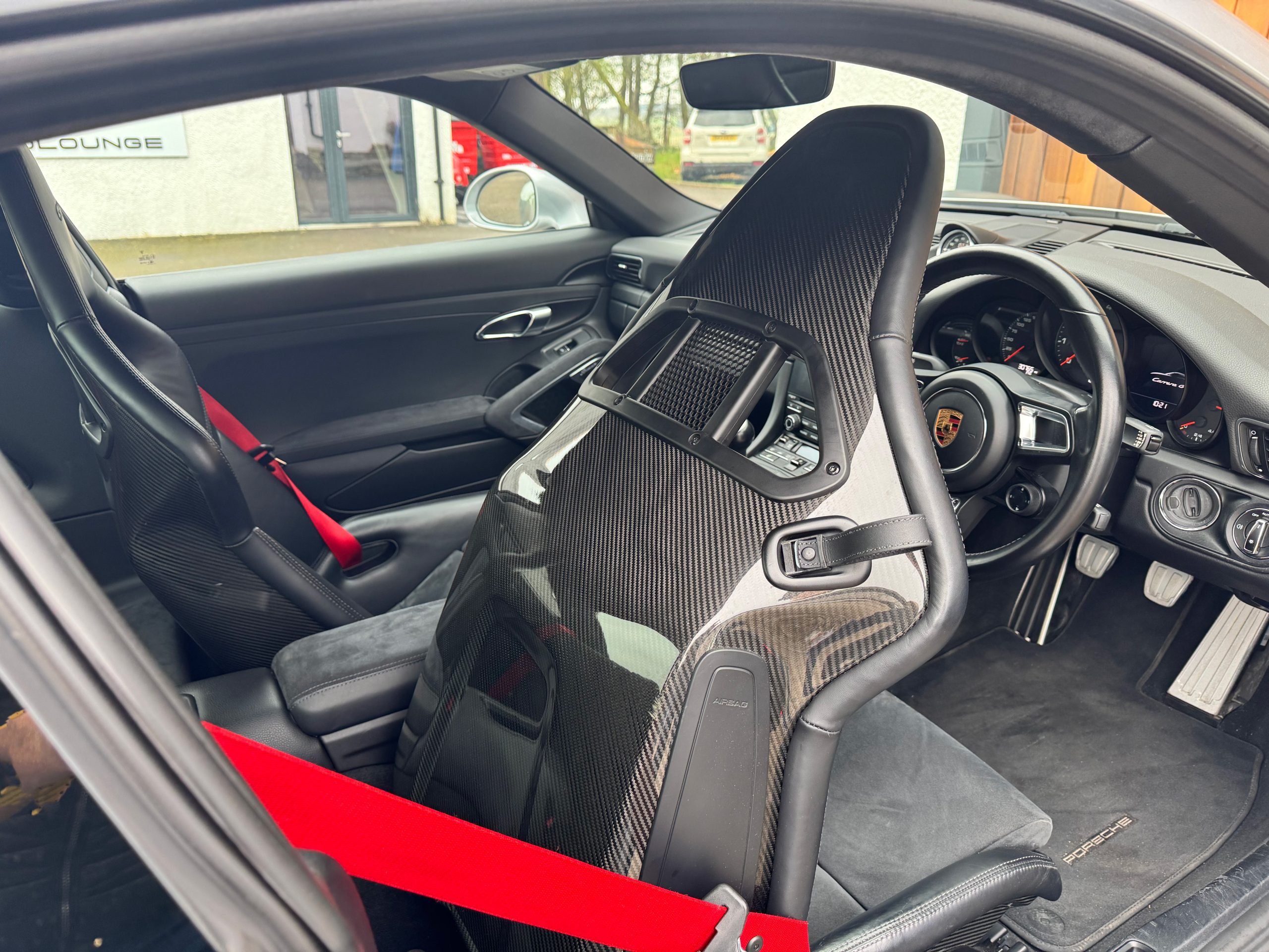 Finished in GT Silver, with Porsches Carbon Backed Folding Bucket seats trimmed in Black Extended Leather it is, in our opinion the best 991.2 on the market today.